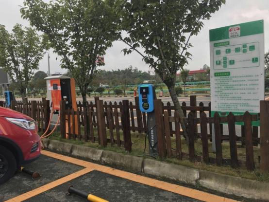 充电站里的直流充电桩充电速度可快了,30分钟差不多可以充满80%的电。