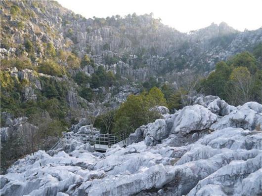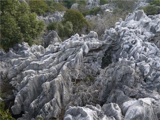 礁灰岩风化表面呈灰白色,整个三衢山因而如雪山般巍为壮观,极具特色。