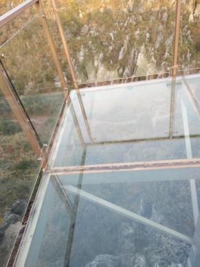 连接着吊桥的是玻璃栈道,试想一下,站在宽1.5米至2米,地面落差达400米的玻璃上,放眼远方视野落差近千米,能不害怕么!