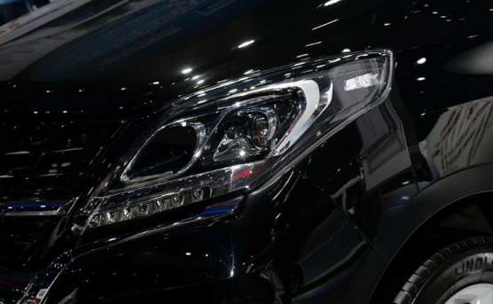 展厅摆的是黑车,这样看大灯好像做了熏黑处理一样,很漂亮。