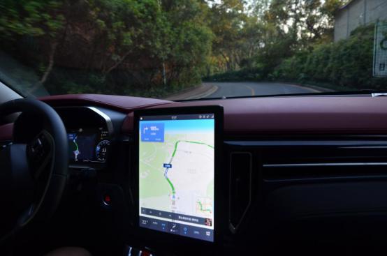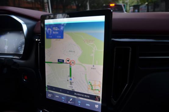 这是主界面,导航系统可以提前设置好常去的地方,比如家里、公司等,上车以后,车子会询问回家还是去公司,很人性化的设计,系统就会如上图一样规划好一条通常的路线,清晰明了。这个车的导航很有意思,中控液晶屏负责显示路线,在仪表盘中央还会显示当前位置的详细路况,这样子在导航的时候就可以不用去看中控屏了,直接看仪表盘就可以了,既方便又安全,很好的设计。