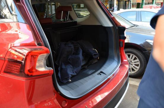 电动尾门全开,可以见后尾箱的空间也是很大的,我们俩的行李包都放在里面,容纳性不错的,这个尾箱开启角度是可以调节的,而且设置很方便,可以直接通过语音设置。
