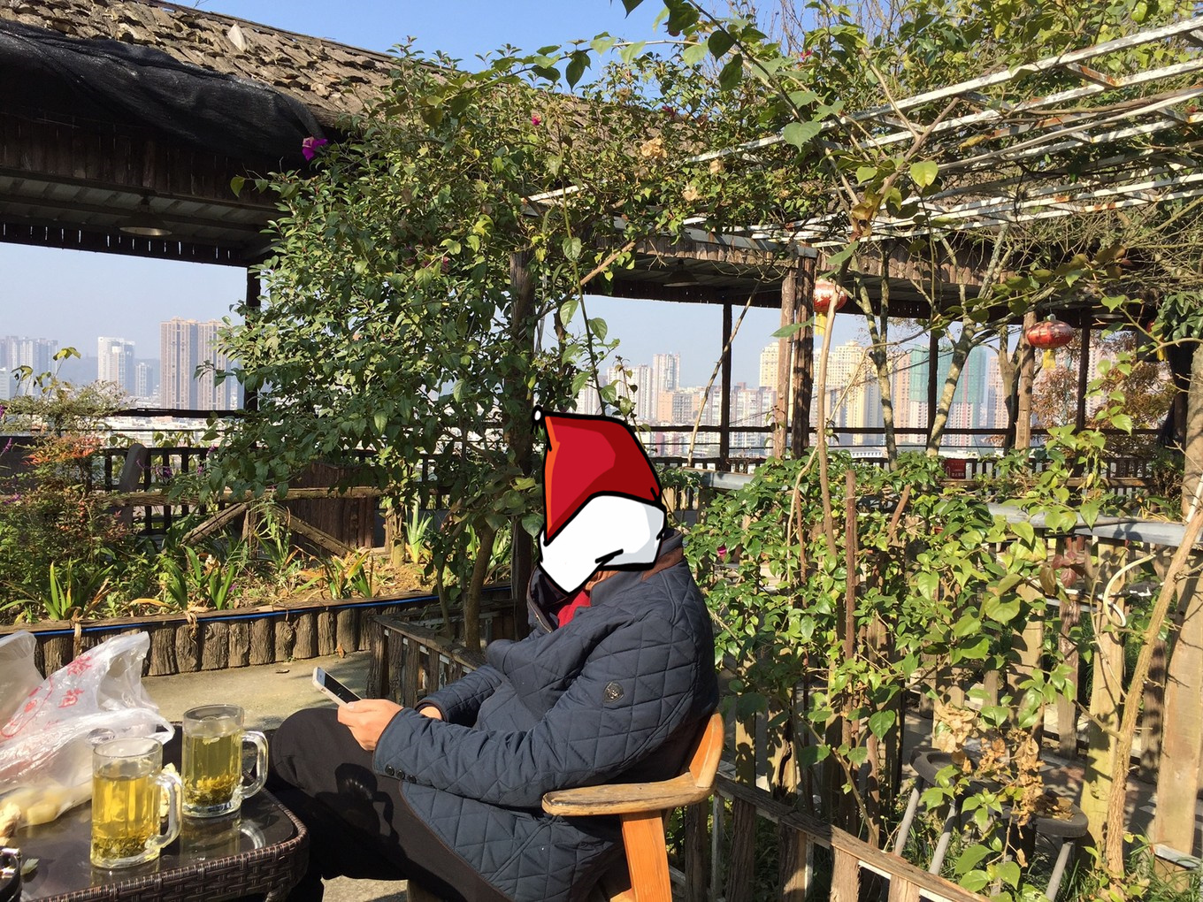 陪老爸在公园喝茶