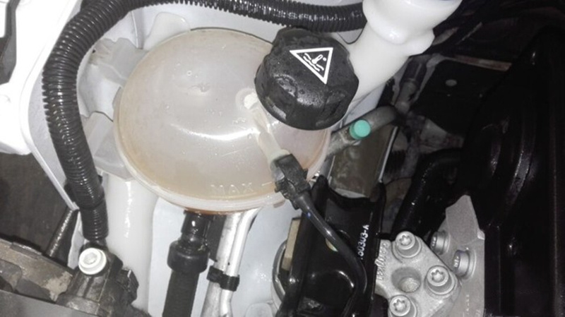 就做这一套,换机油机滤,预备就是换这些。但扒出空气滤芯一看,师傅说很脏了,还有点起毛了。那换吧,55块钱一个,就是工时费还收了我30几。。。呃,我确实赶脚可以自己换,但来都来了,怎么也给专业师傅一个展示的机会。且我还在质保期,不能为了空滤脱了保,自我安慰一下。另外,还加了一壶防冻液,2L装,50块材料费,工时费另收。。。