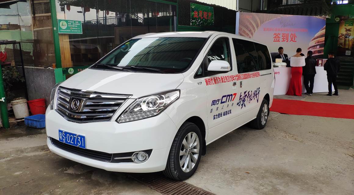 签到处旁边就挺了一台风行的CM7,这车挺挺大的,最顶配的要卖到20多万呢,还是一个什么商务交流会的指定接待用车,确实高级!