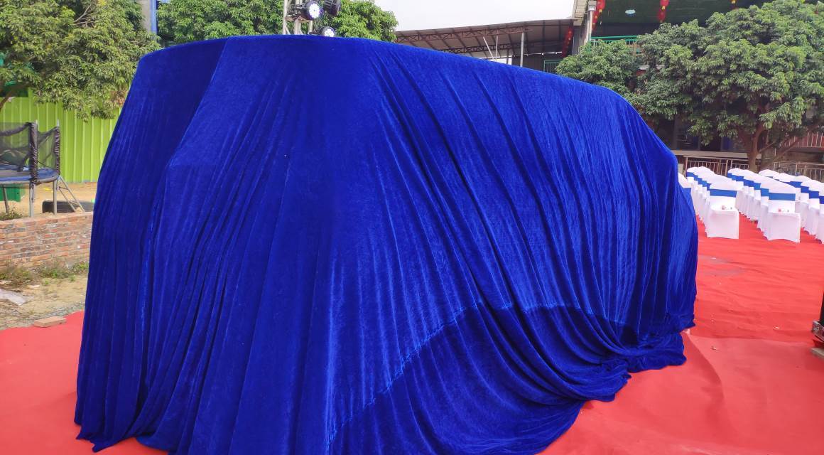 领导把两款车都介绍的情况介绍完后,就到了揭幕的关键时刻!