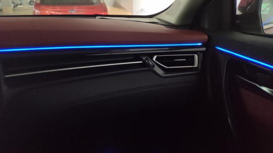最喜欢蓝色的氛围灯,每到停车场就会亮起来,也可以用语音控制颜色、亮度,还有16种颜色可以选择更换