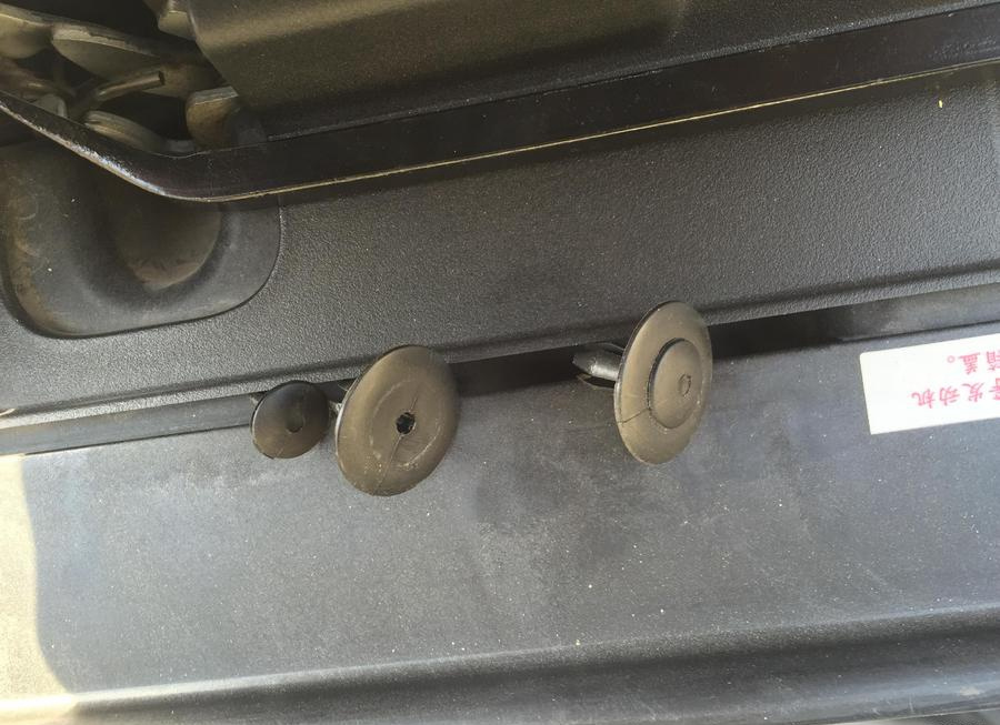 1、撬起眼前这四颗卡扣,这四颗是固定隔音棉的,经验就是掌握力道,还是那句话,别玩暴力,撬坏了就得不尝失