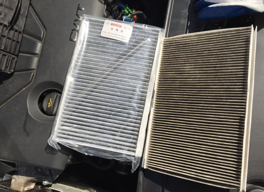 唉呀呀,旧的确实布满了灰尘。本车原装即是活性碳的滤芯,买的话最好也买活性碳的,也就相差10块钱,面都吃不了一碗。。。