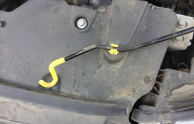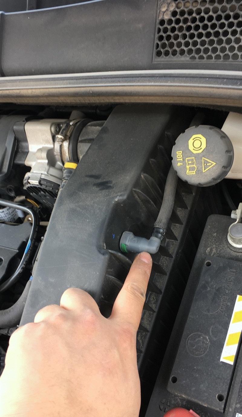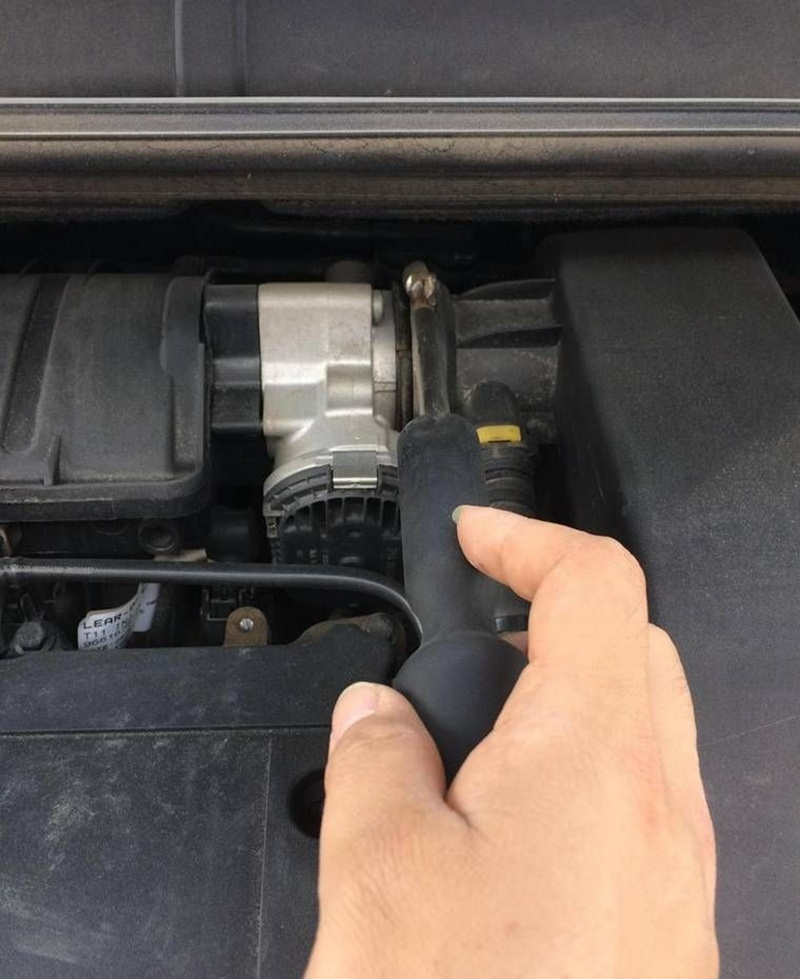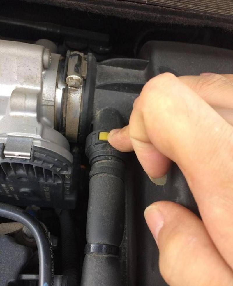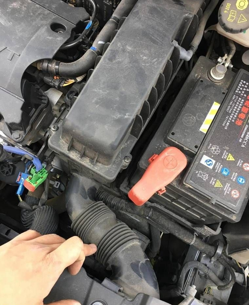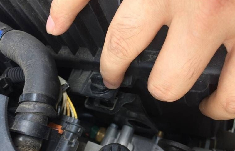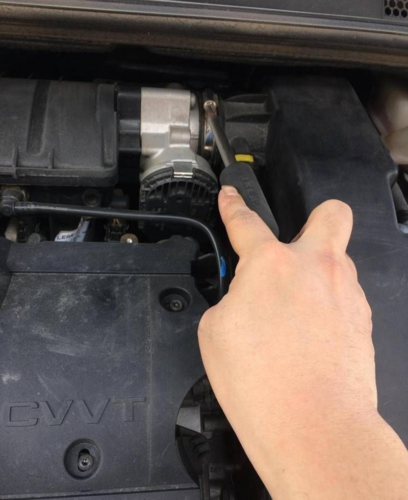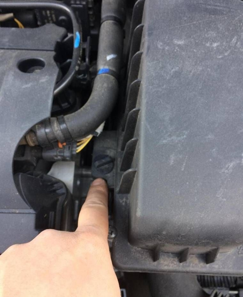 1、发动机后方,图示位置有颗螺丝,上一字螺丝起拧松