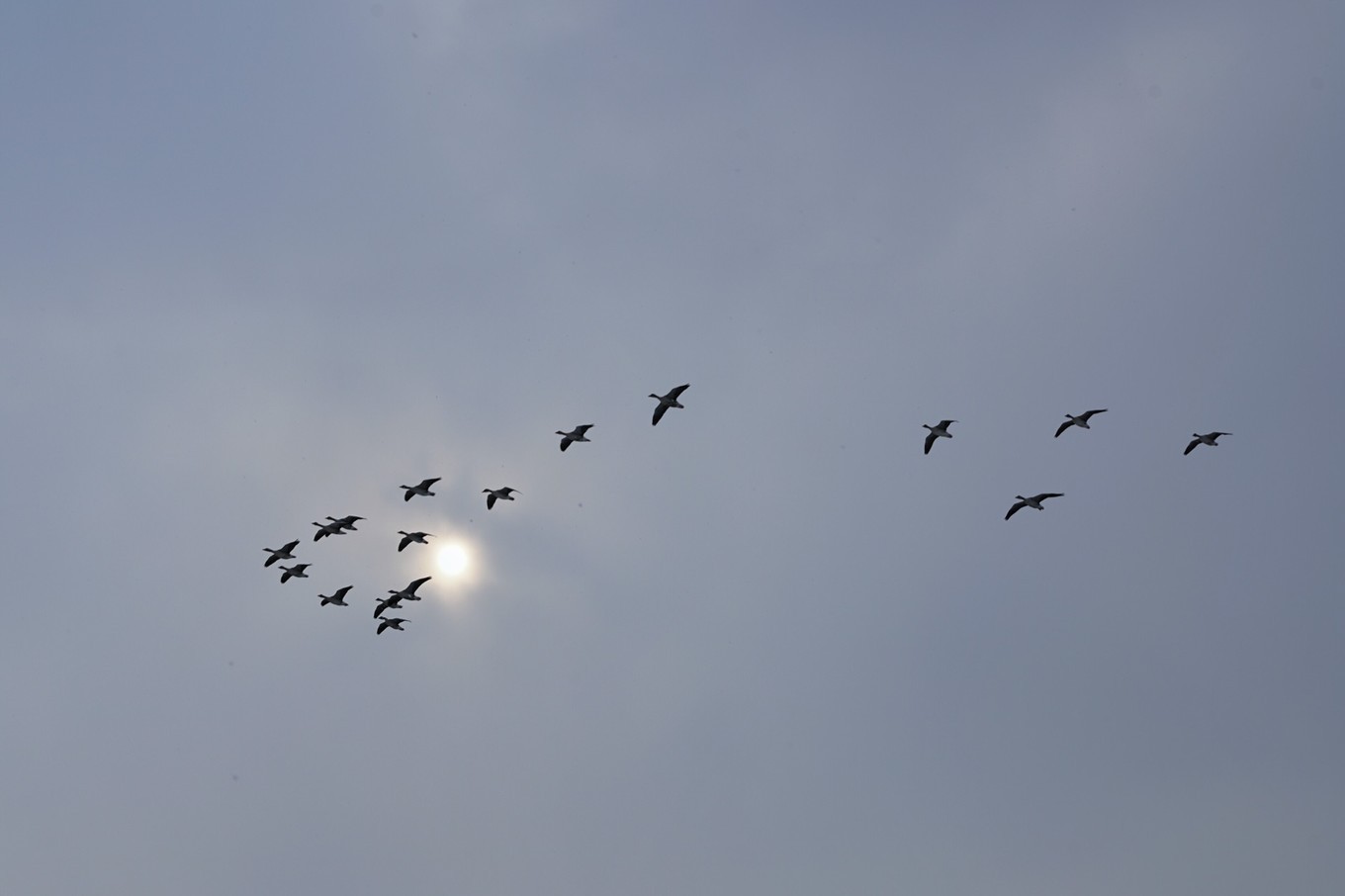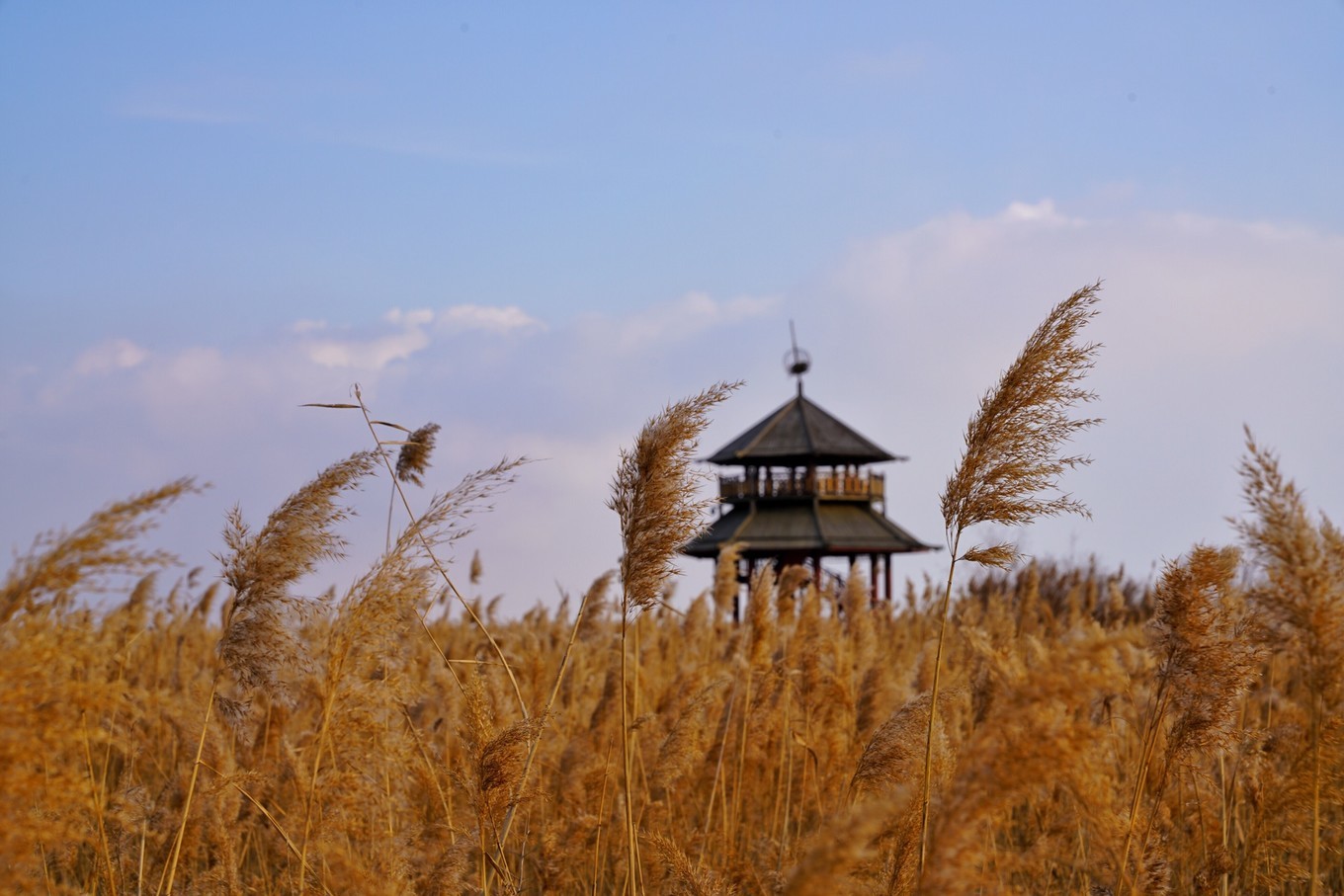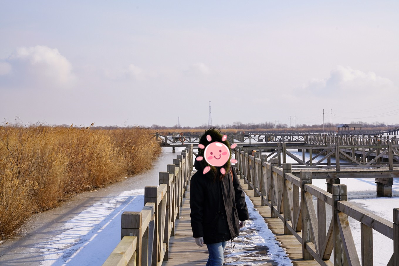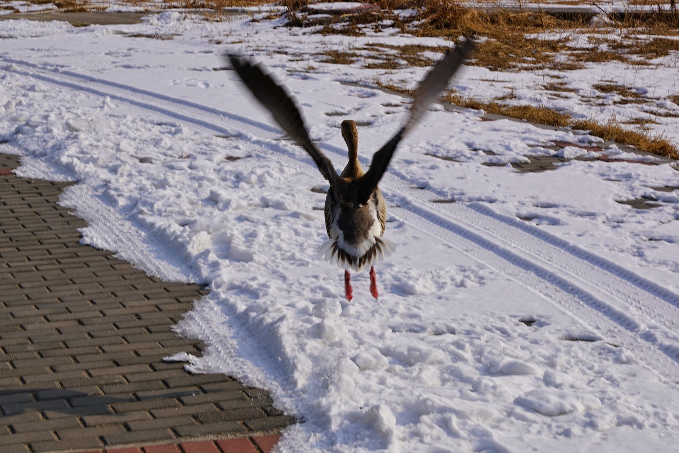 飘荡的芦苇、天空翱翔的鸟儿、远观的天鹅、圈养的丹顶鹤,搭配着天空飘零的雪花