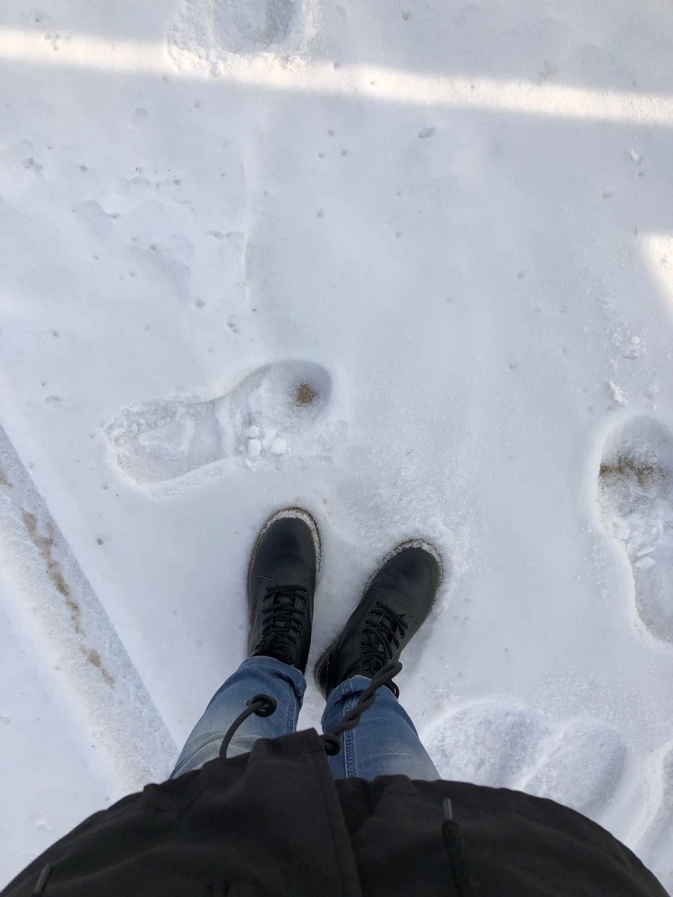 出着太阳,地上的积雪让我们都很兴奋