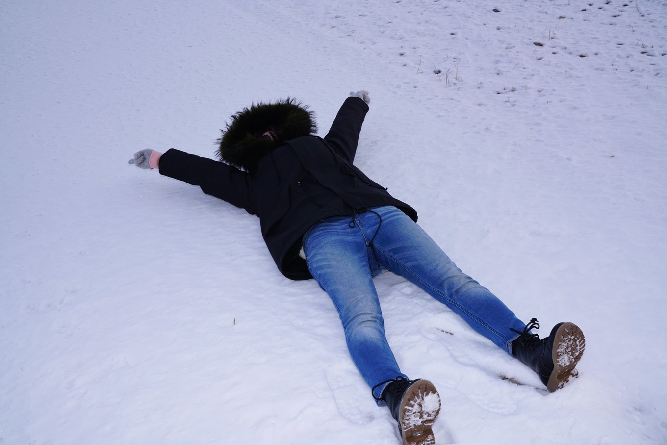 在雪地里踩来踩去 蹦蹦跳跳 像小孩吃到了蜜糖一样