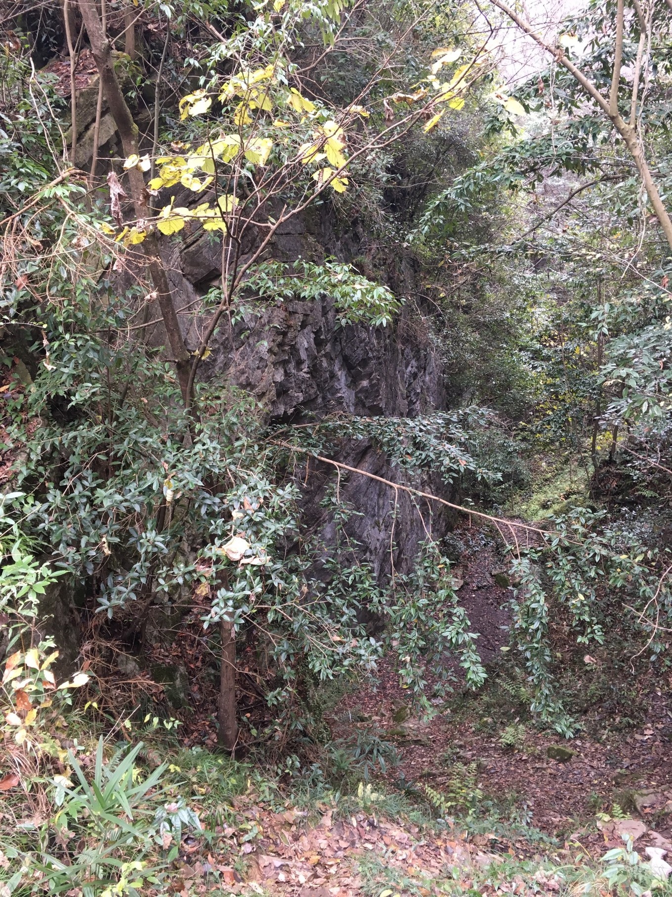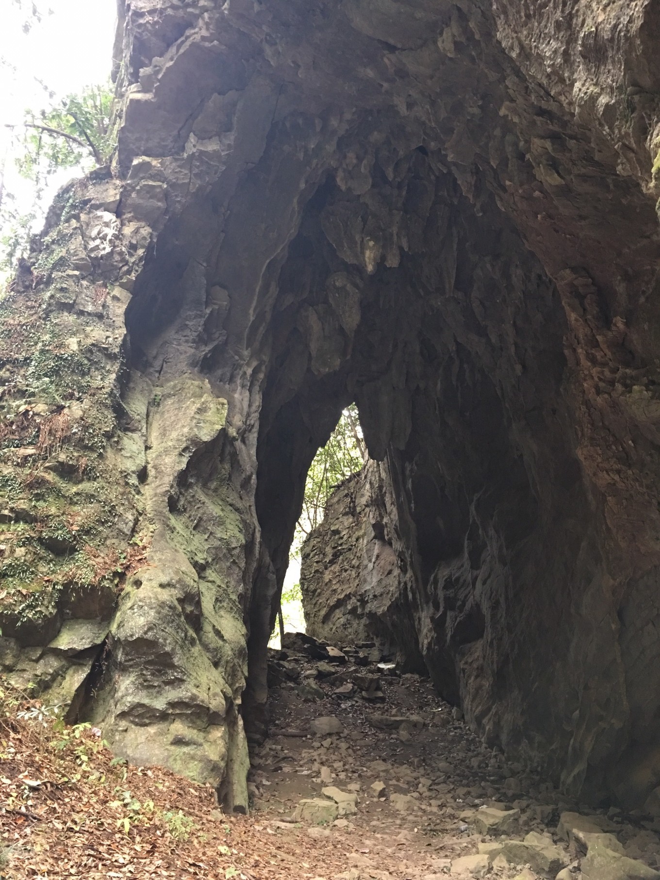 天生桥其实就是由一块完整的弧形巨岩组成,沿山中小径可下至桥底,桥面下呈微拱形,四周藤蔓遍布,桥上杂树丛生(整体是拍不到了)。