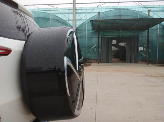 五把镰刀虎虎生威 在城市中都得辨识度相当高 毕竟把备胎放在外面的车型不多 能把备胎罩当成艺术品来做的厂家 更是少 做的那么好看的备胎罩更是独此一家