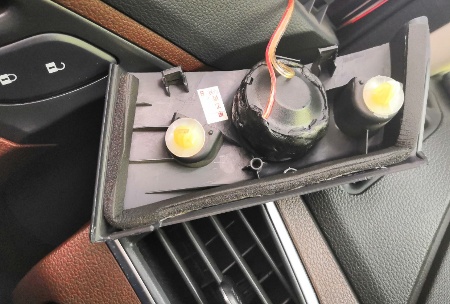 找了个时间,闲的蛋痛,就折腾车,先把这高音喇叭拆下来,很轻松就拆下了,还好没搞断扣位,