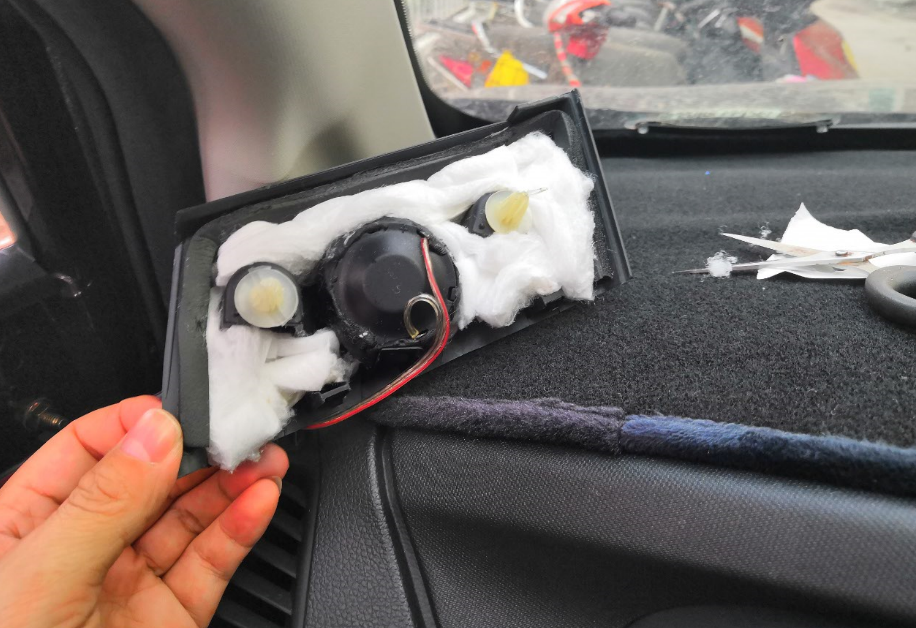 最近贸易战搞得很多公司都不怎么景气,好多公司都提前放假了,经济不太好,公司里也不忙,又闲的蛋痛,这车不折腾,心里就不舒适,好好的高音喇叭,因为之前装高音喇叭时发现里面很空荡,想着是不是塞一点隔音棉,对这个位置的隔音是不是要好点,心动不如行动,就买了隔音棉,塞满它,管它有没有效果,