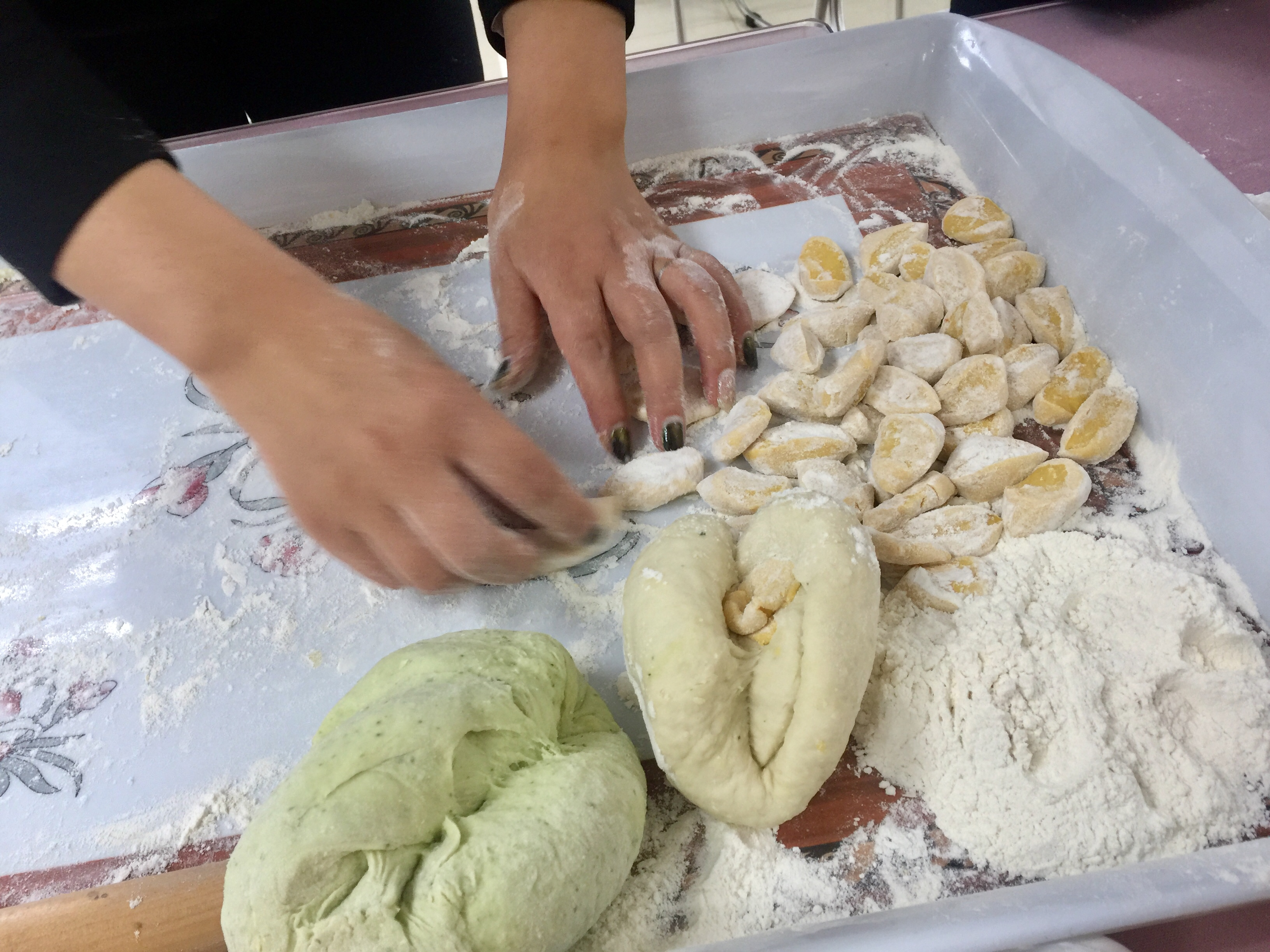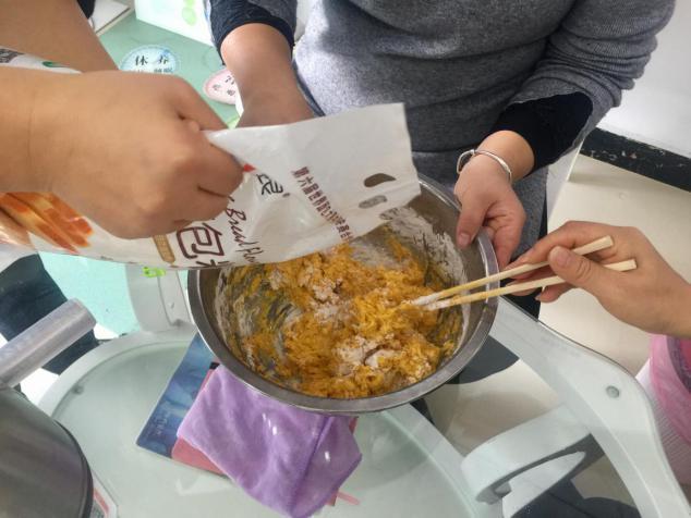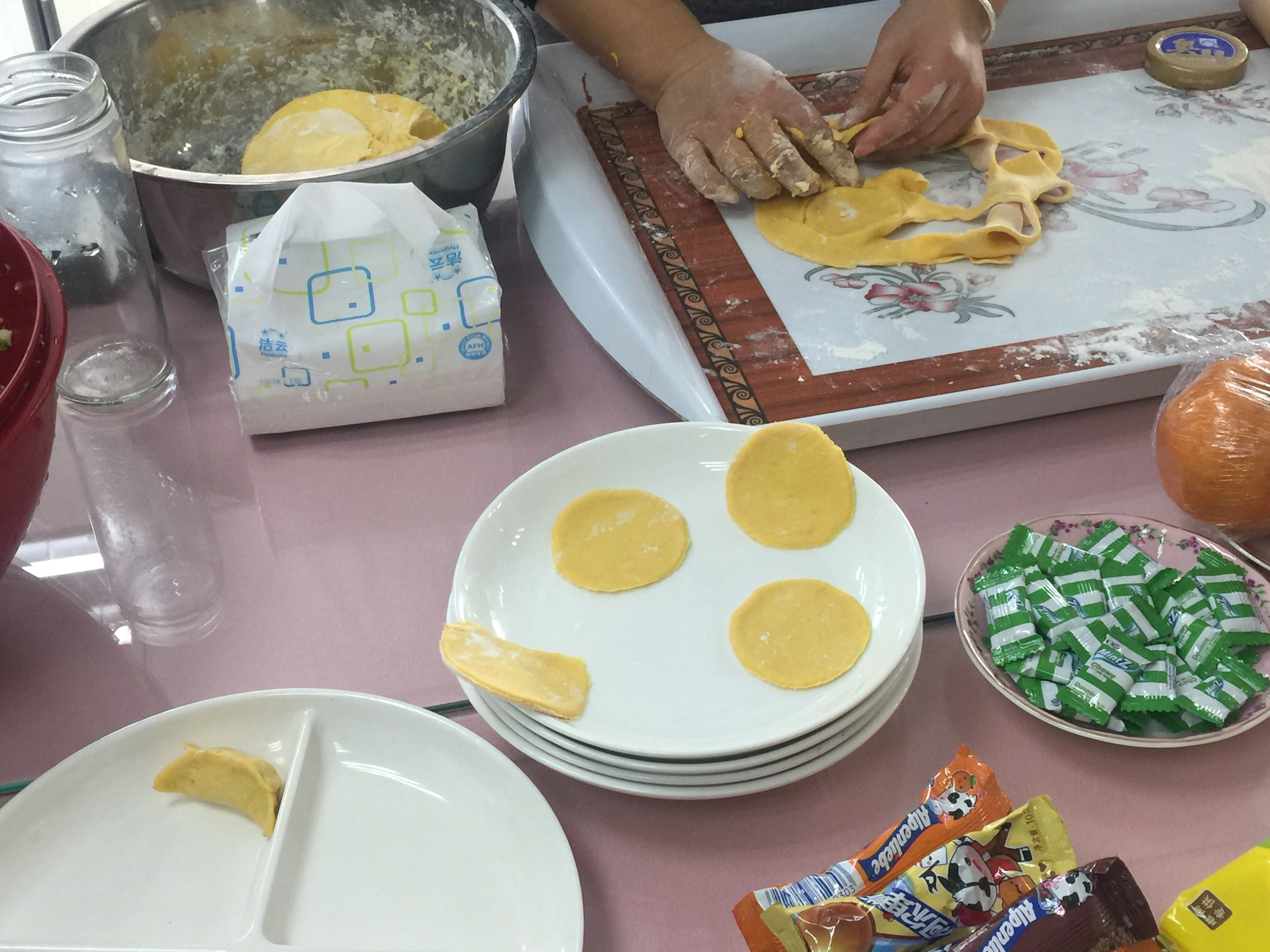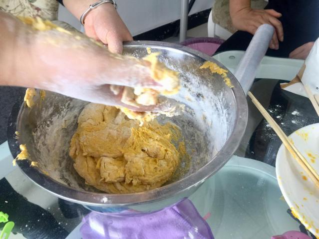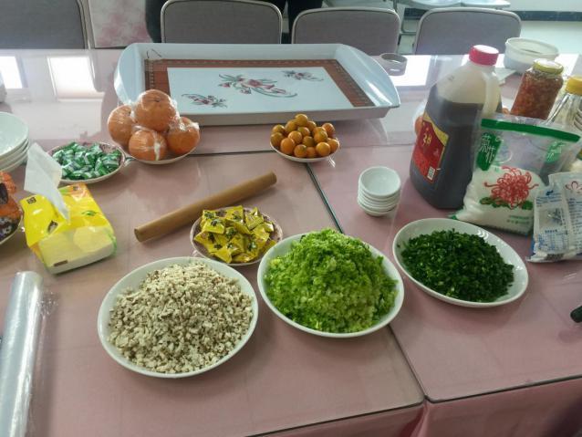 瞧,剁馅、调味、拌粉、擀皮......妹子们分工明确。