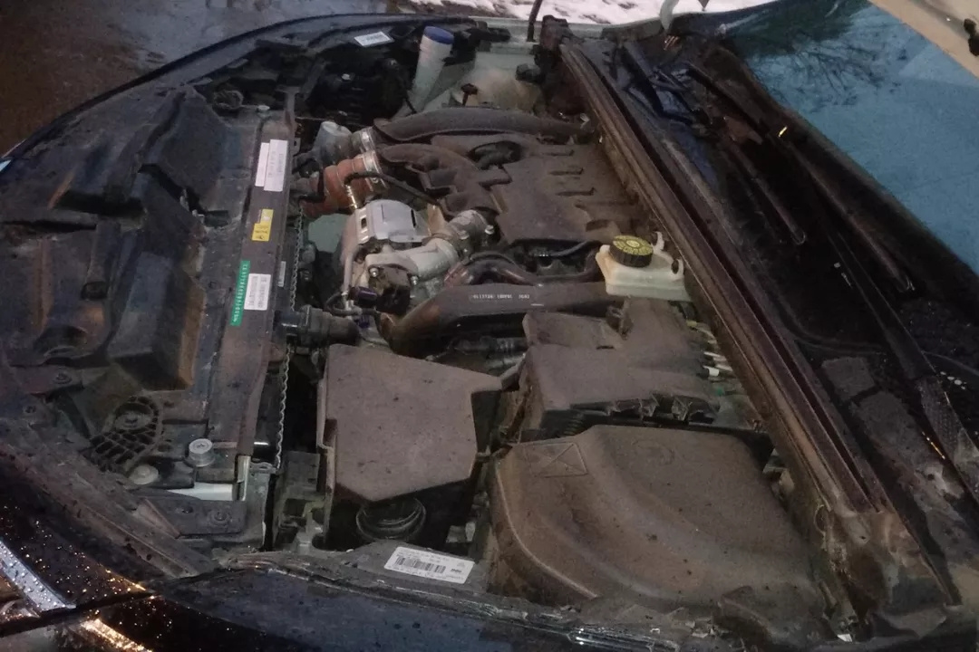 雨雪中,还在揭开它的发动机舱看看状态,拍两张