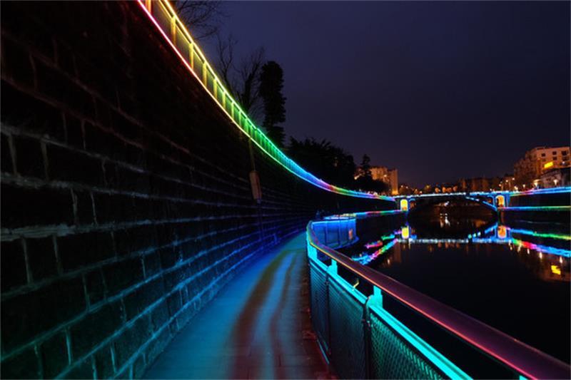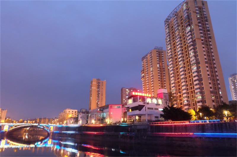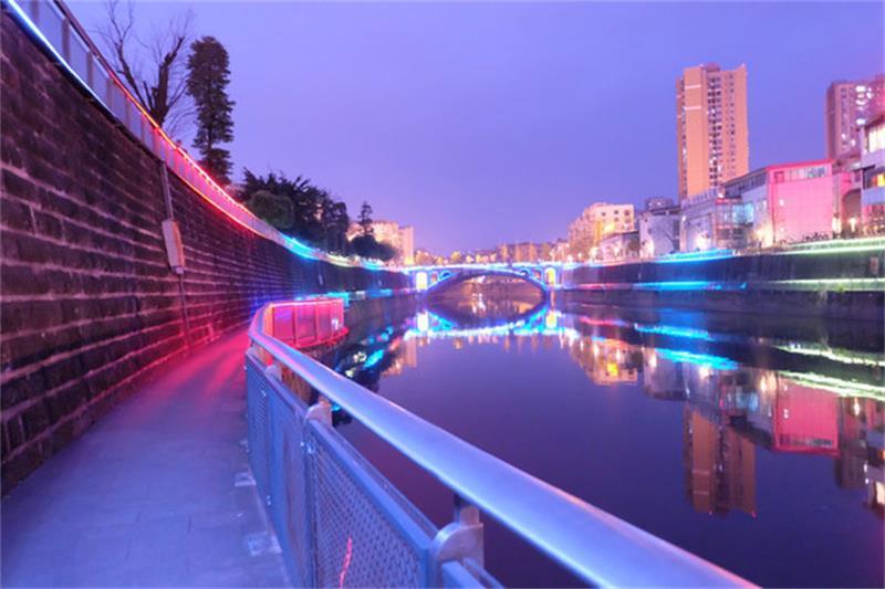 资阳的九曲河边,夜景超级美,红黄蓝绿……各种各样的颜色交替变化,每种都是不同的感觉。
