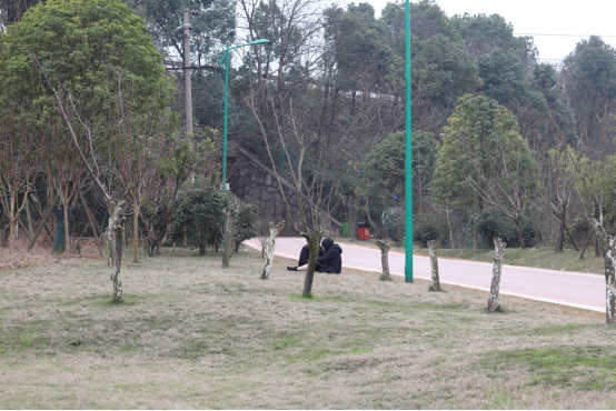 家附近的公园,看着远处的小情侣,我跟老婆也下车,散步去