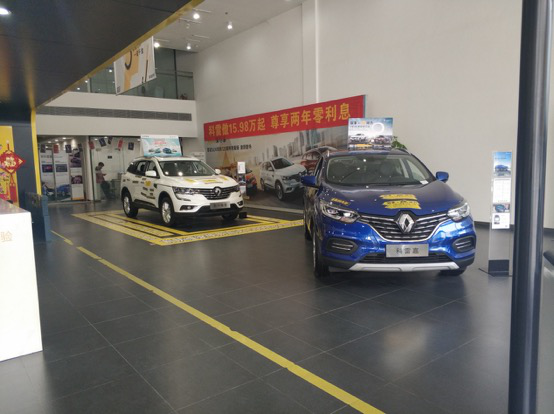 店里摆了2款热销车,科雷嘉和科雷傲,蓝色看起来比棕色的显年轻,但老婆觉得太骚气