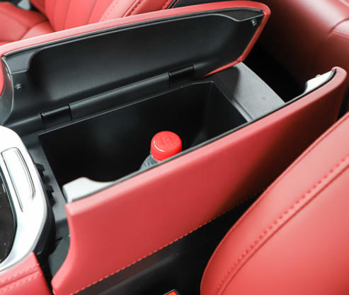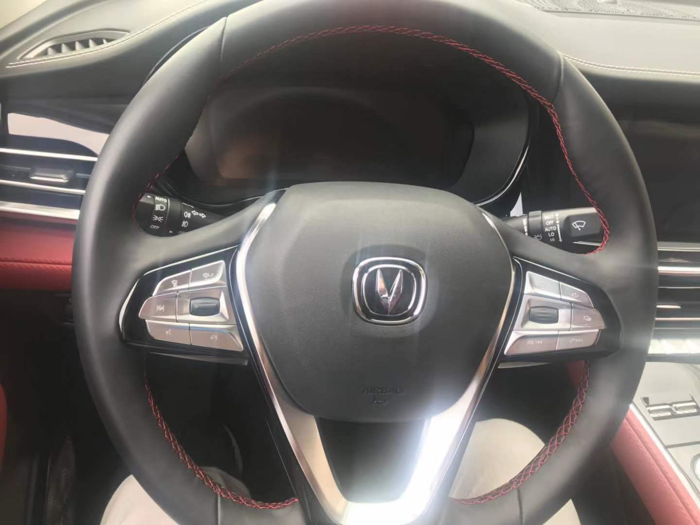 内饰颜色是红黑搭配,一点不沉闷。