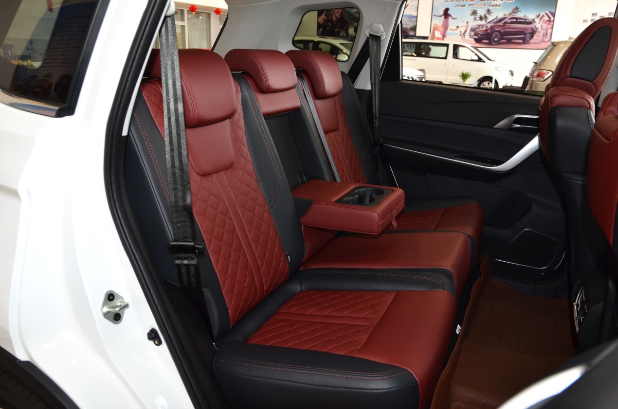 后排不出意外,应该是二老的位置,中间能放下来搭手,坐着倒是能舒服些。