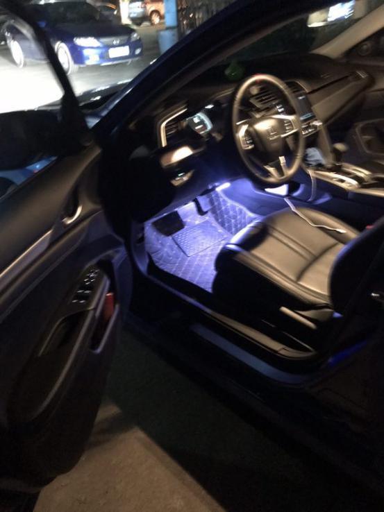 简单总结:改了海拉五透镜氙气灯、双U日行灯、野马灯;前铲侧裙后扰流包角;鸭尾翼、排气管;轮毂贴纸;手缝方向盘;脚窝氛围灯。