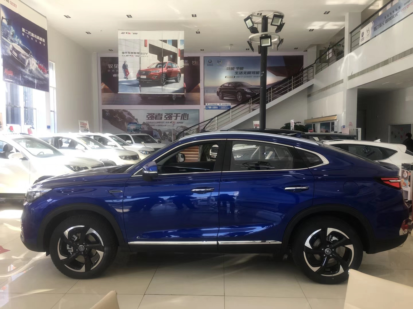 进了长安的展厅,老婆一眼就相中了停在“C位”的CS85,看着比较潮。