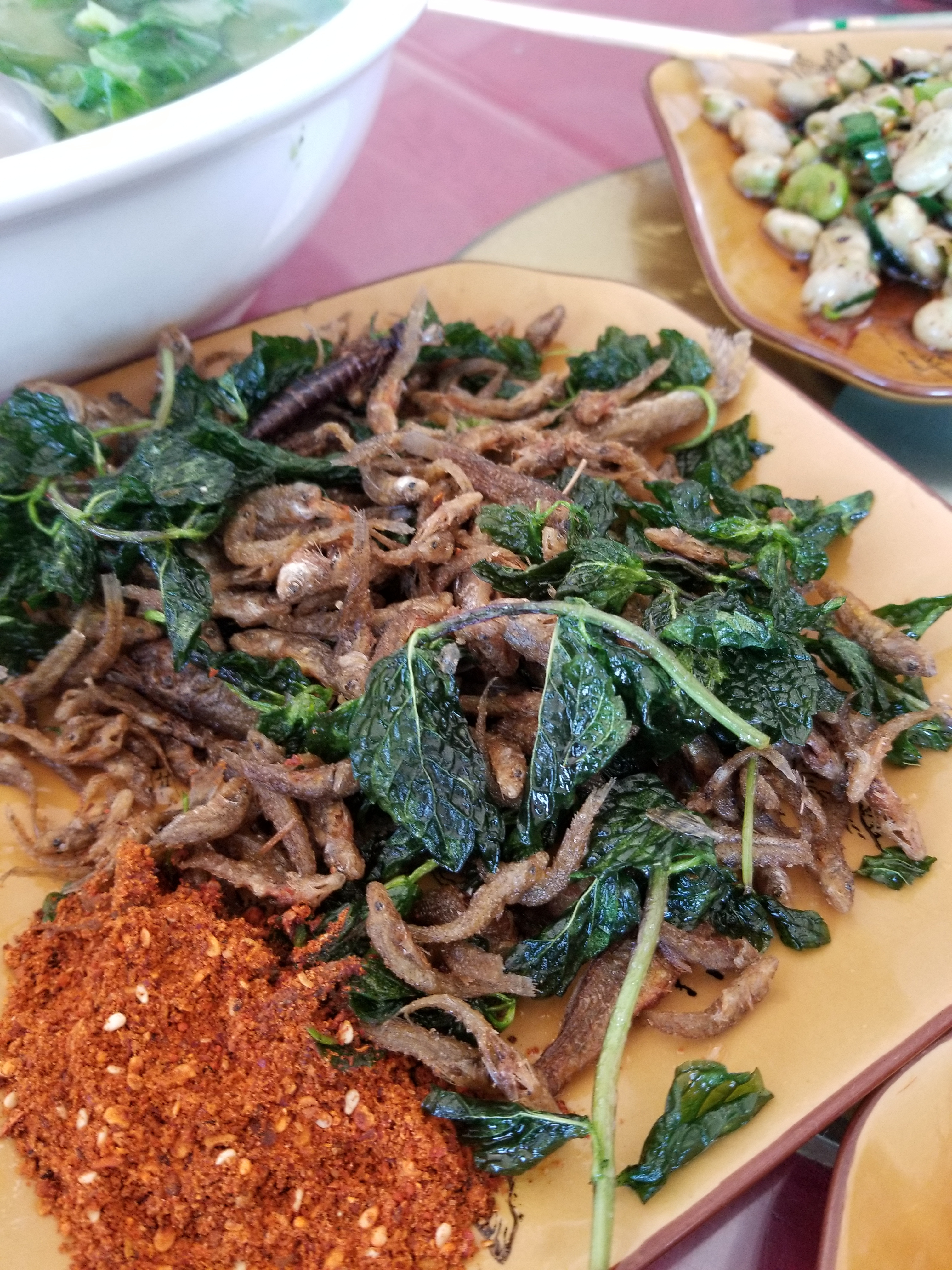 再里面逛了半天,几个大人加上孩子也累得跑不动了,出来的时候差不多也到了饭点。朋友推荐了家江湖菜馆。听他一说,我直流口水,话不多说,直接冲过去。