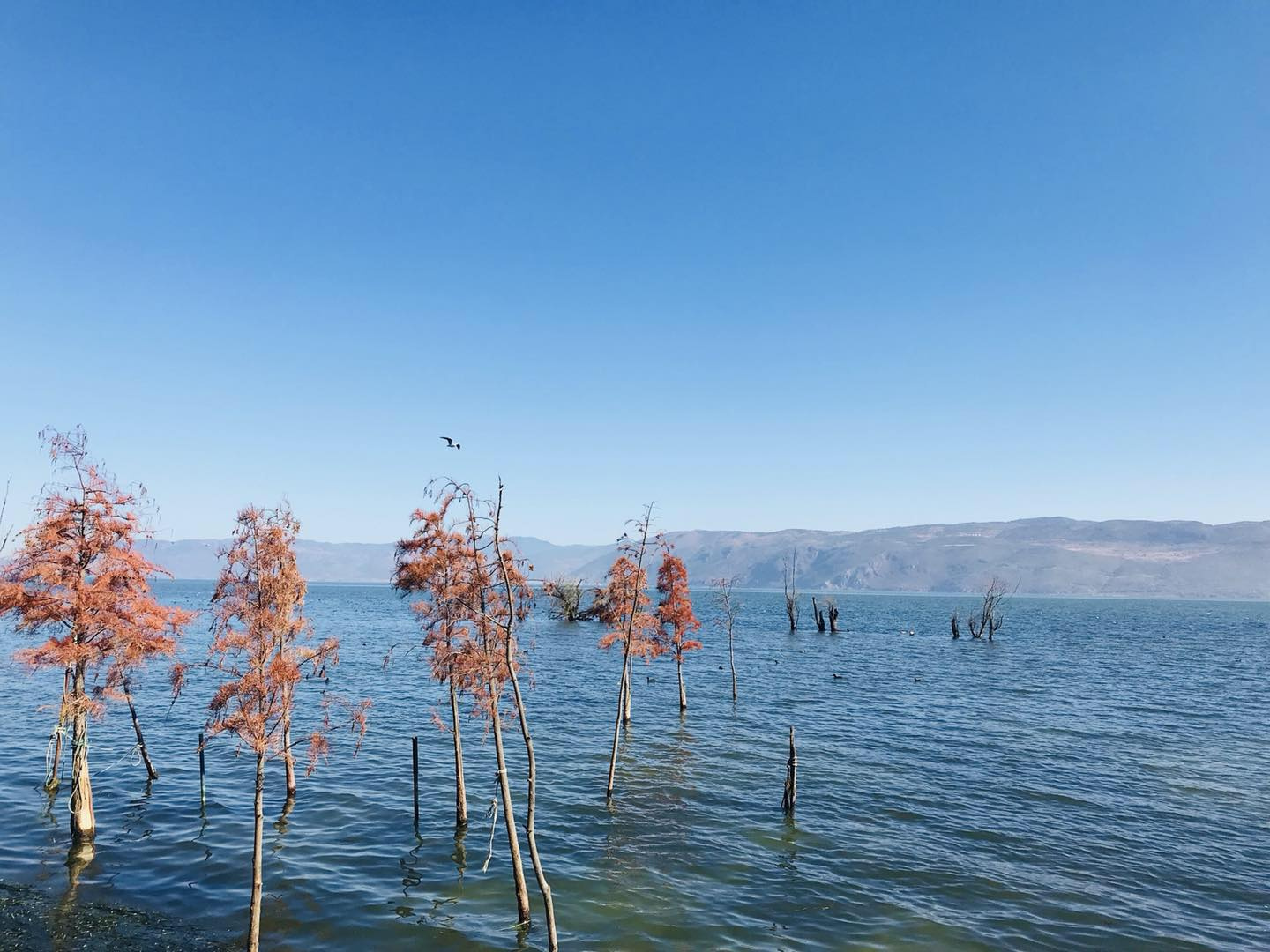 倒不是电瓶车的电用完了,是这太阳也太扎人了吧,而且我们急急忙忙就出发了,根本就没有防嗮措施,估计晚上回去要脱皮了。环洱海是别想了,骑了这么久,我们还是原路回去了吧。