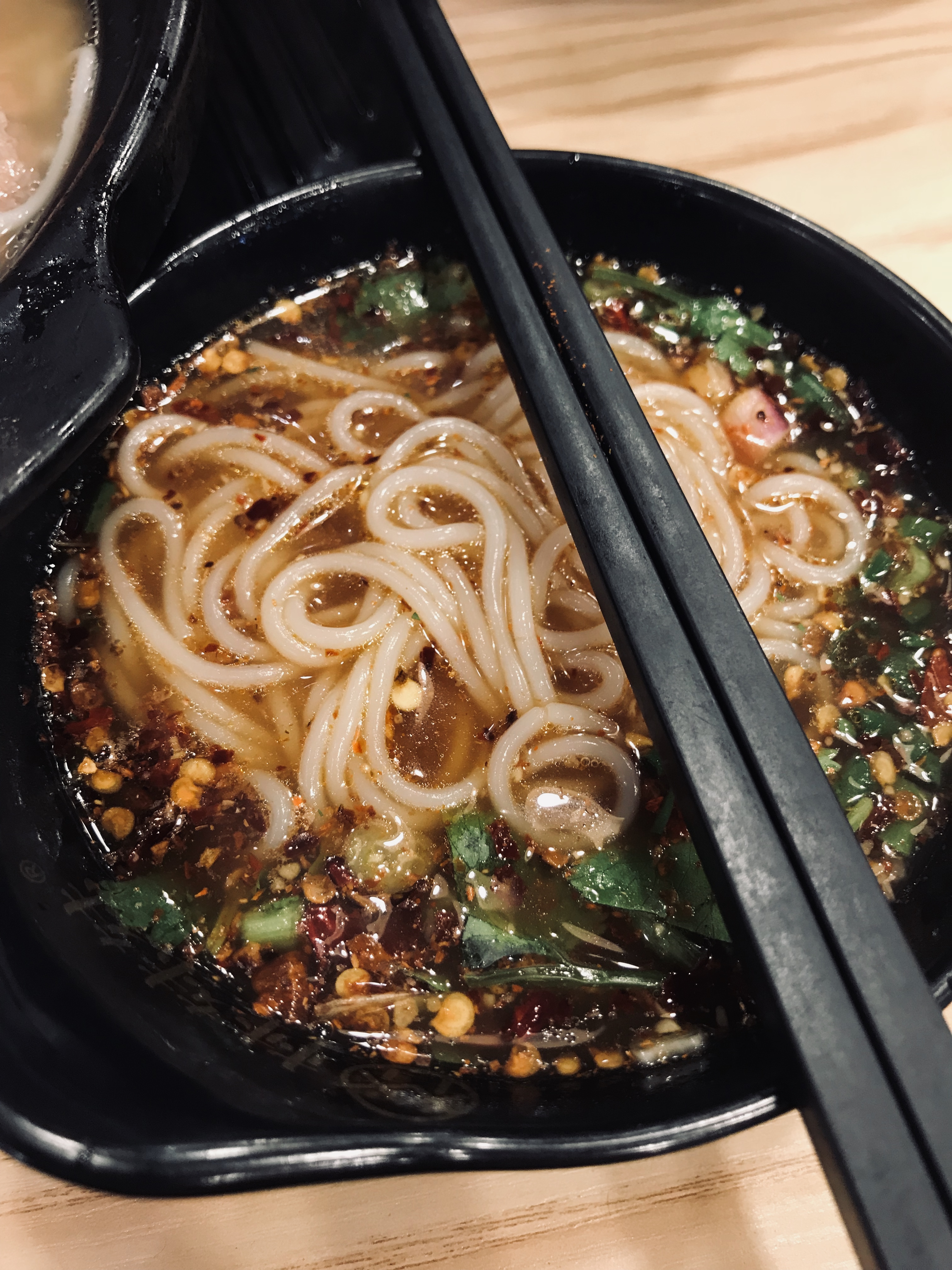 (一碗米线配一碗蘸水。云南的辣椒好像要大一些,可能是阳光充足的原因把。)