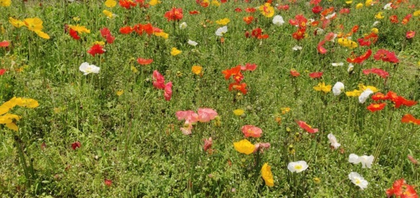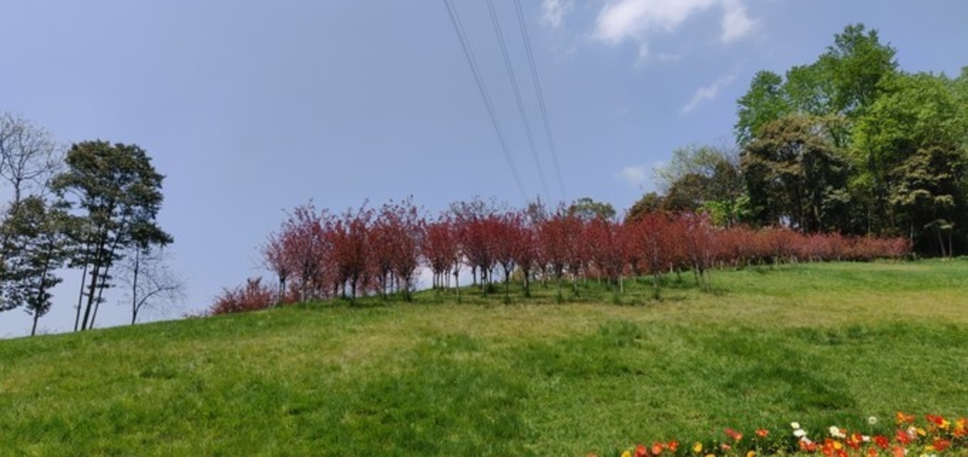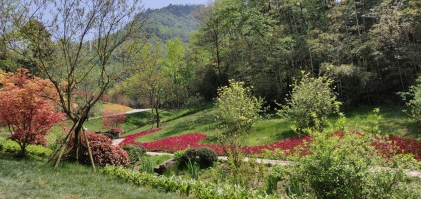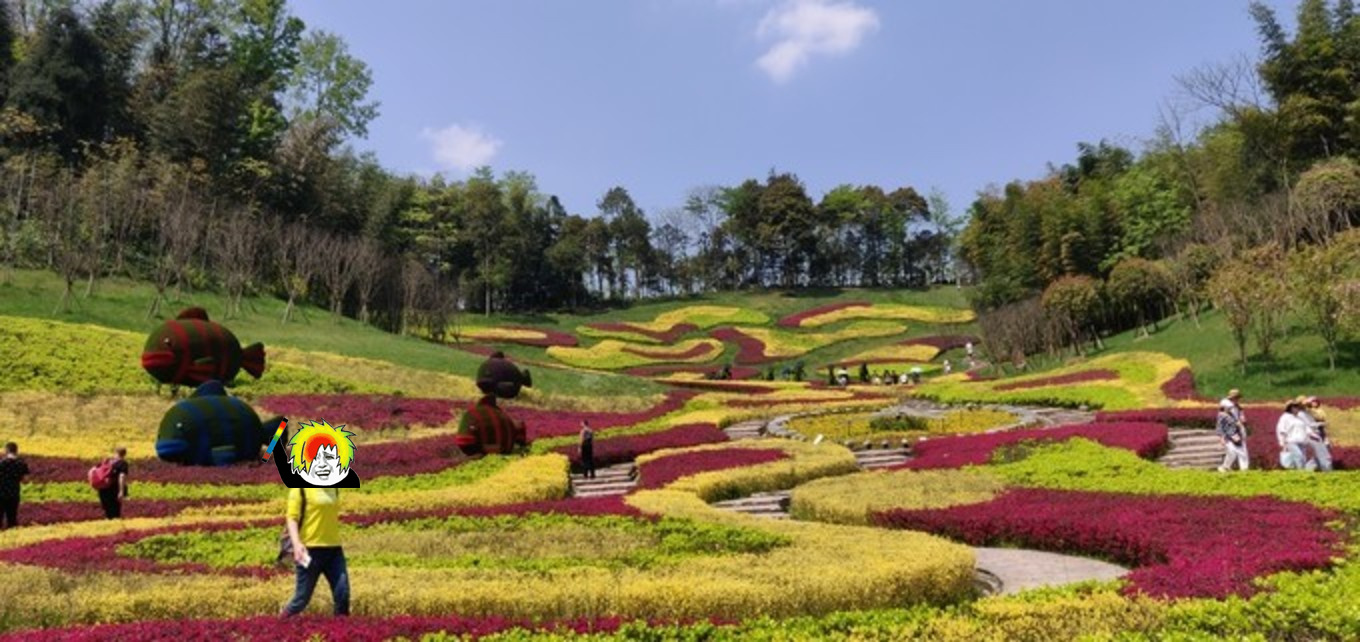 谷地中央,有一片造形的彩色拼图花带,自不自然成了拍照盛地