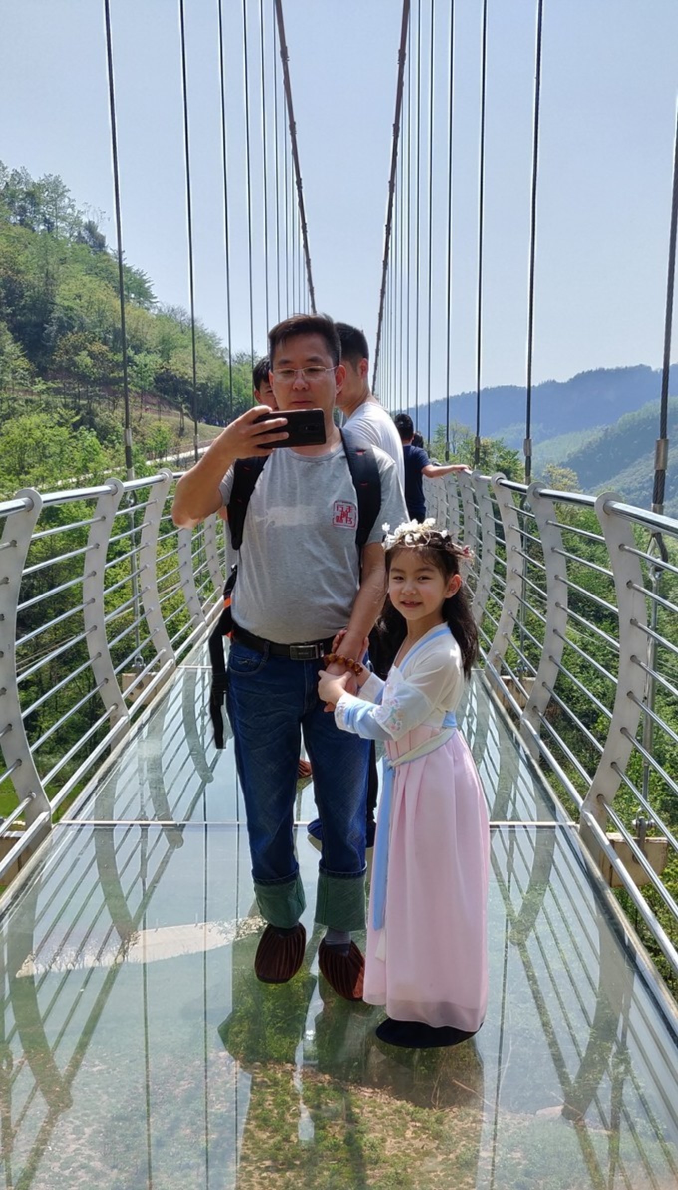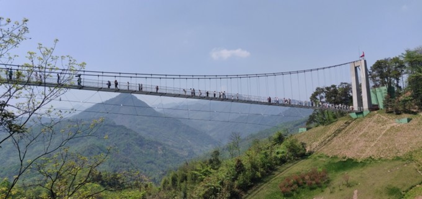 惊险片段是玻璃桥,跨度约300米,最高离地约80米,几次都有放弃的念头: