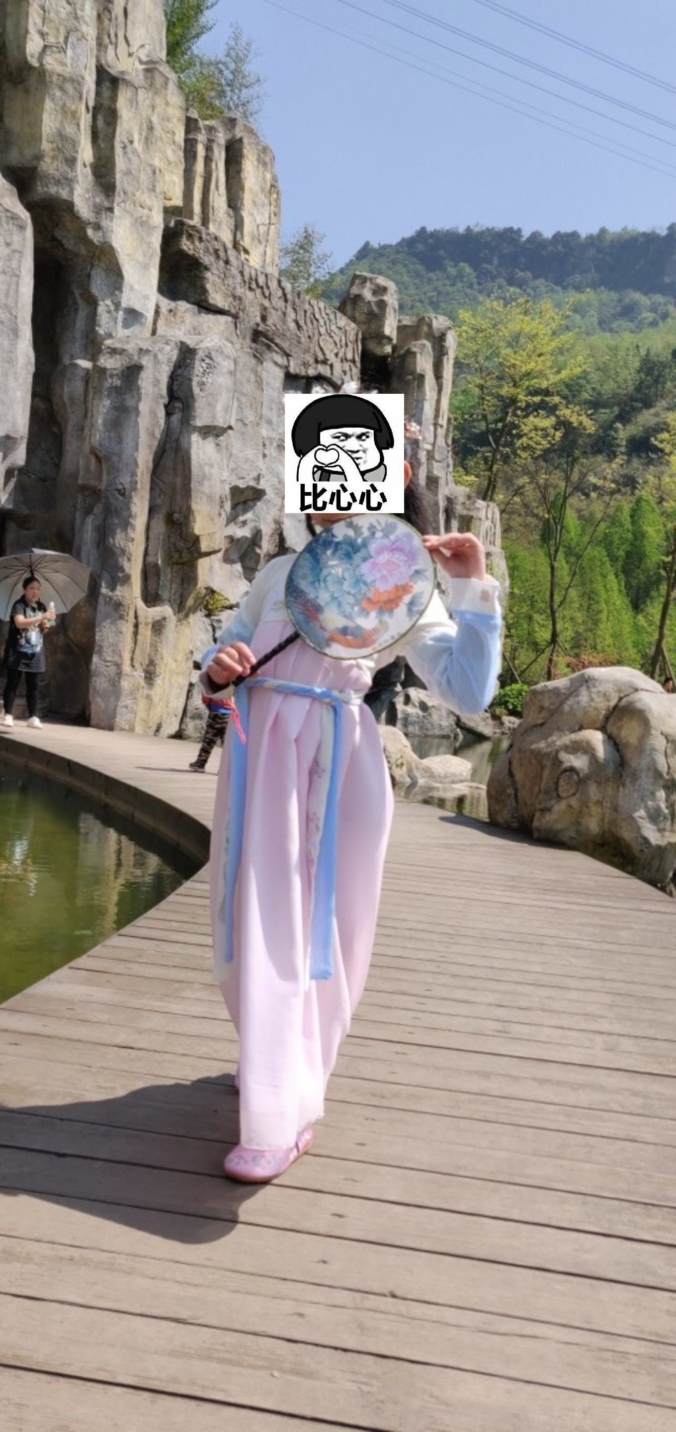 景区漂亮已不容质疑。女儿特意穿了她酷爱的汉服,来一组流行色,汉服当道: