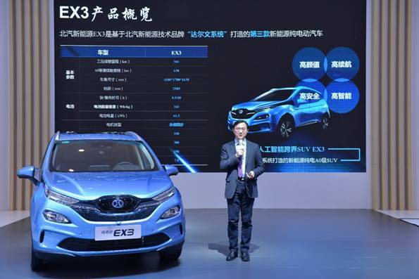 在车展中心几十个品牌、几百家车商、近千款车型中,让我印象最深刻的,是一款人工智能跨界SUV 北汽新能源EX3。