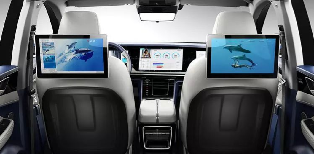 车内前排全液晶仪表、中控屏、副驾驶前方娱乐屏加上后排两个娱乐屏,可实现炫酷的五屏联动。显示内容不仅可以在五个屏幕中自由切换,甚至还可与用户的外部 iPhone、iPad 等移动设备实时互联,形成“5 + X 屏即时互联”。