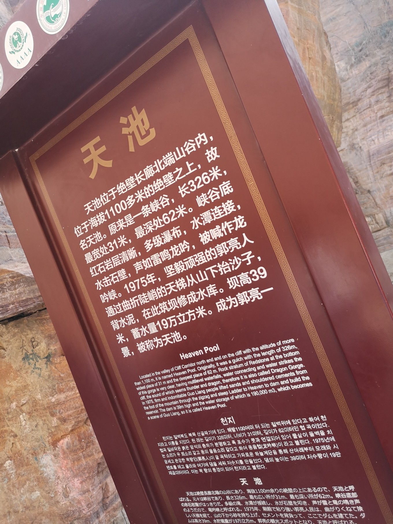 长廊过后是天池,但是我们去的时候没有水了,所以那些喊泉我们也没有去找,因为不知道有没有水。