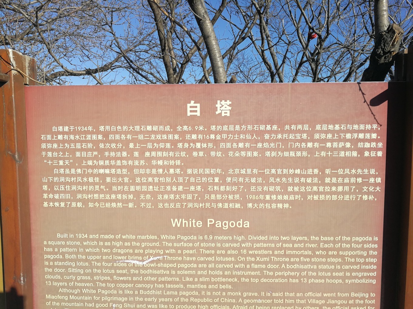 道教之地出现一座喇嘛塔?让人意外。细看说明,才知这并不是一座佛塔,而是一座镇塔。下图有关于它的传说故事,也太过无厘头了吧。。。