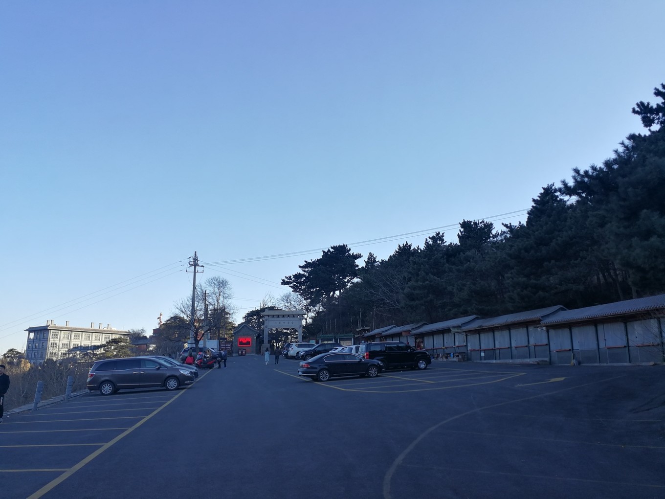如果来的时间合适,可把车停在山门前的小型停车场。然后你徒步。。。