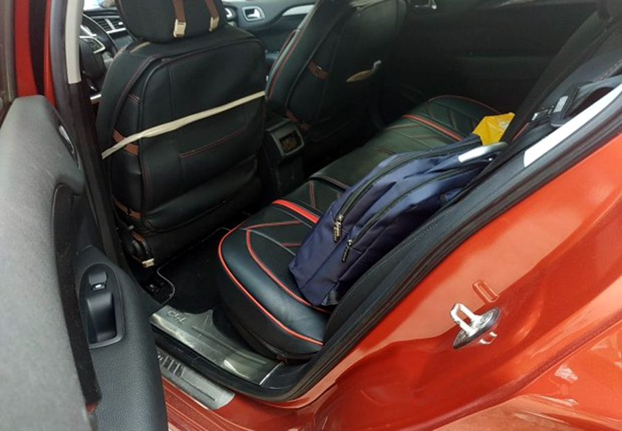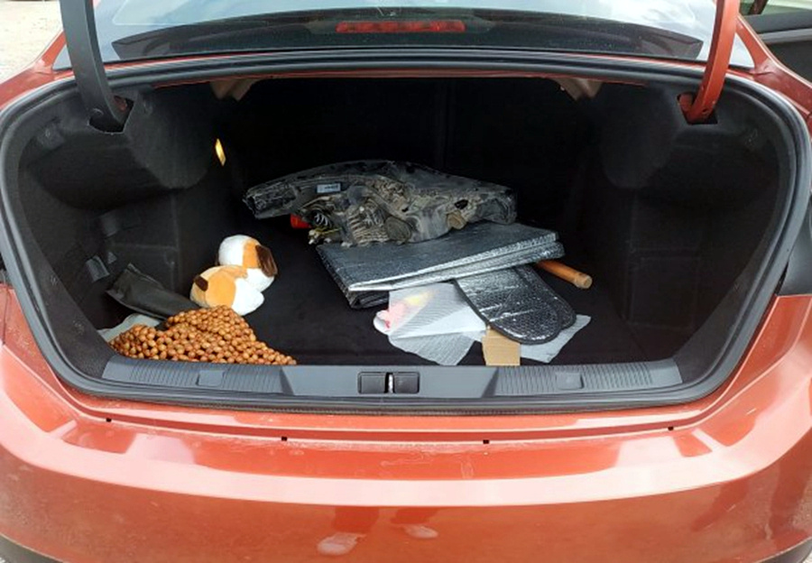 后备箱能装一大一小两口行李箱,再装两个包,还能再塞些杂七杂八的零碎,充分够用