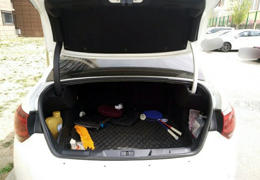 尾箱很空旷,上次折扣淘来的专用冷却液、机油静候下次保养到来