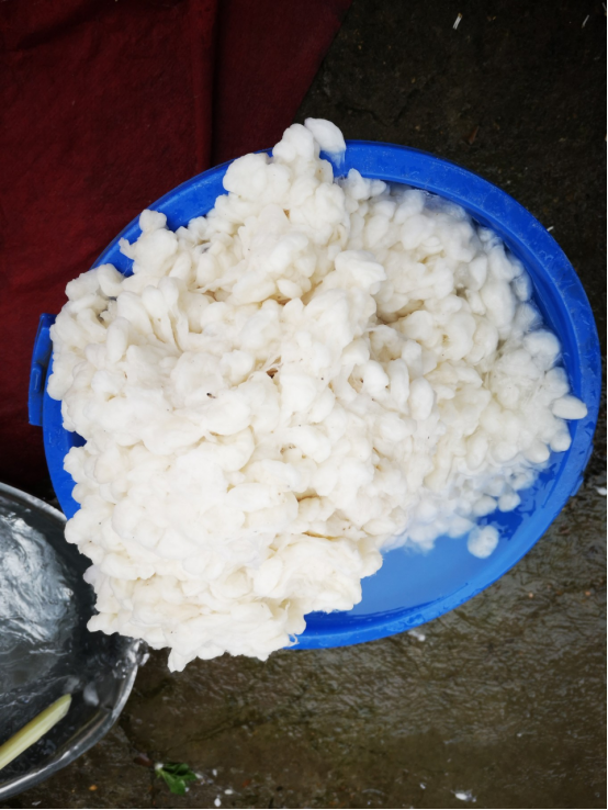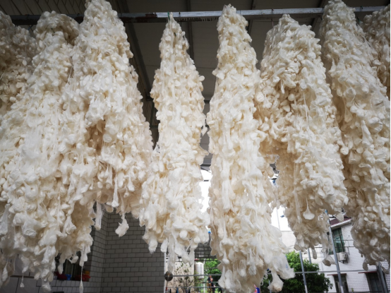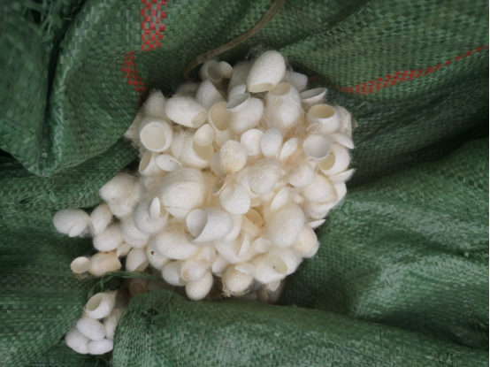 刚好看到一个蚕丝加工的老板,剪开去蚕蛹