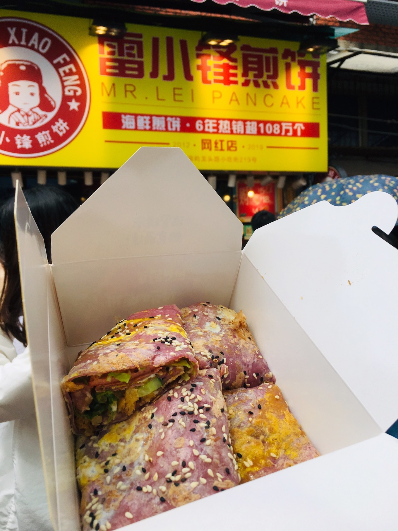 雷小峰煎饼强推,13种馅料,7荤6素,料超足,味道超赞!!25元有4大块,分量大,比其他小吃划算多了!