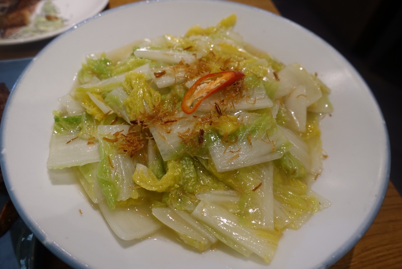 还好我们去得早一点,排在1号,过了十几分钟,就排了十几桌了。我们点了三个菜,蝴蝶骨,芋泥鸭和娃娃菜。人均消费100。