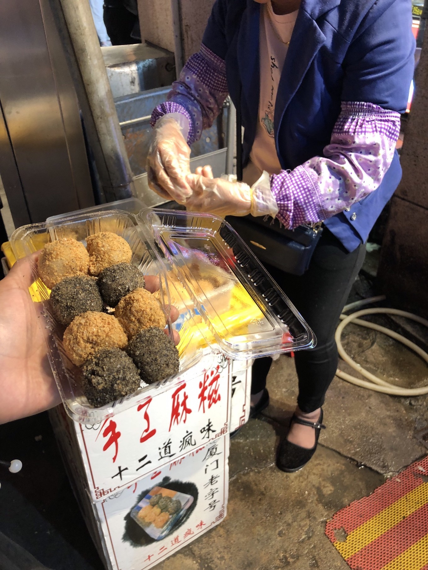 手工麻糍,15元8个。有两种馅料,花生馅和芝麻馅,现场包,我觉得很好吃!