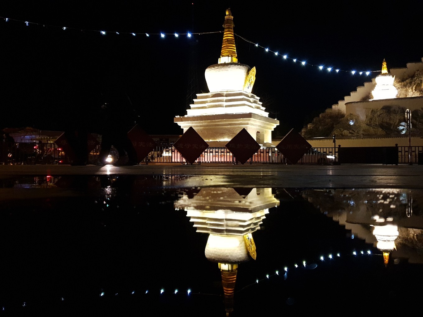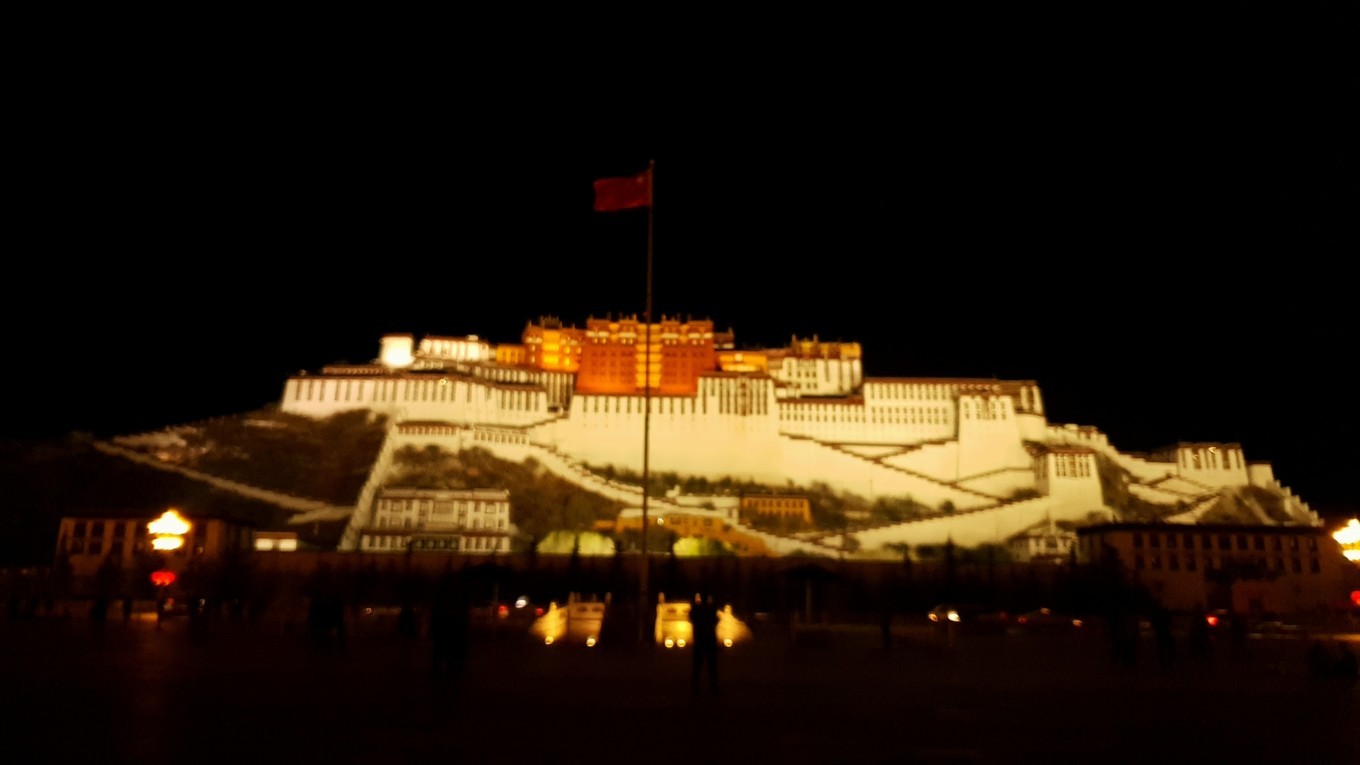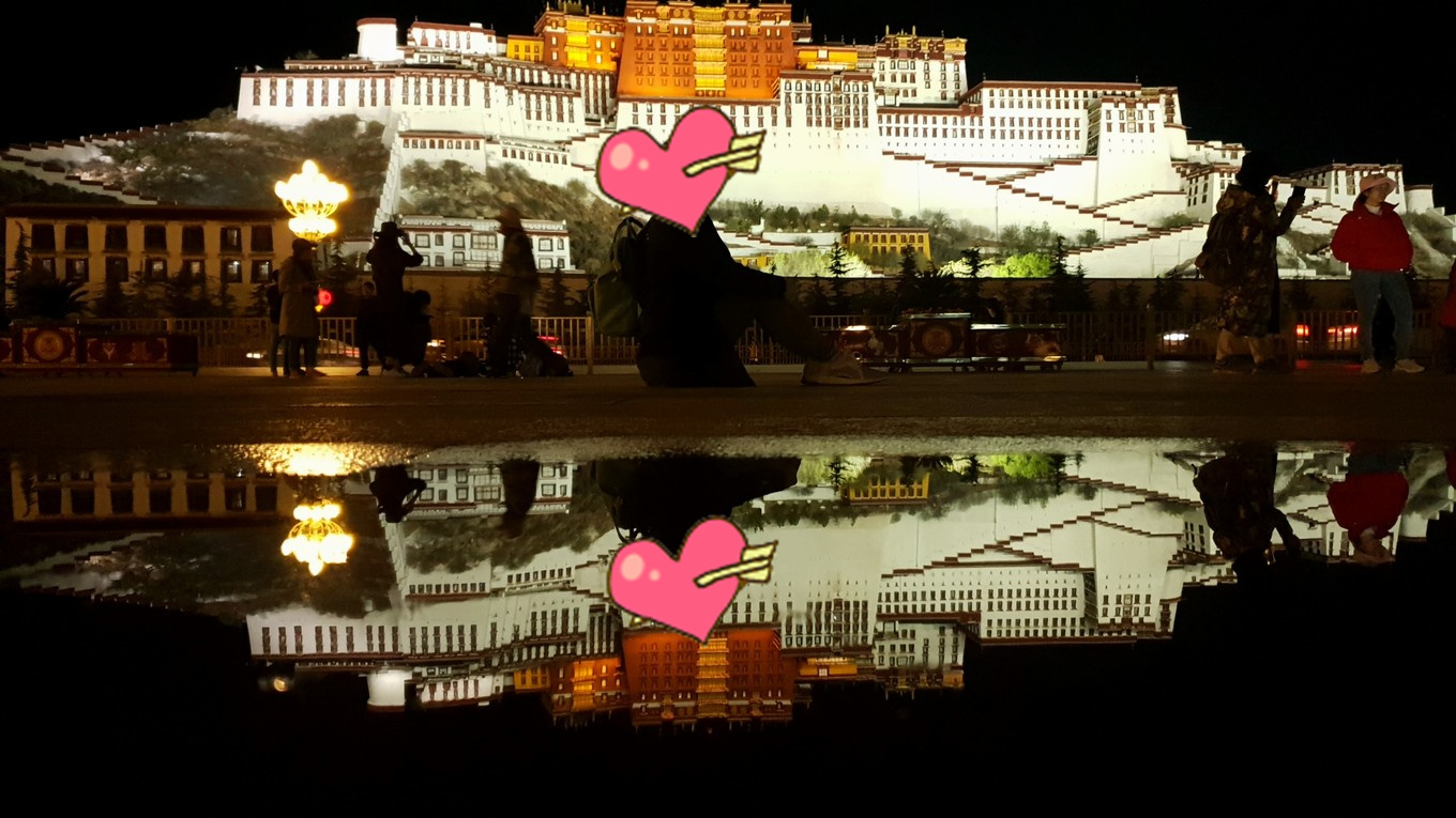 晚上,等来了沐沐。饭后我们就出来溜达了,布宫广场上聚满了各地过来拍照的行人,一瓶水洒在地面上,瞬间就是一个布宫的倒影,美的不可方物, 白塔的倒影也是映的很美丽。