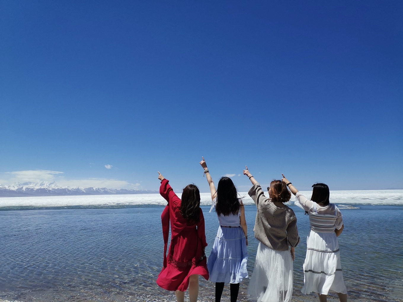 早上五点就起来啦,开始计划穿什么衣服,做精致的猪猪女孩,洗漱,化妆,换衣。吃了早饭,开始出发,去纳木措