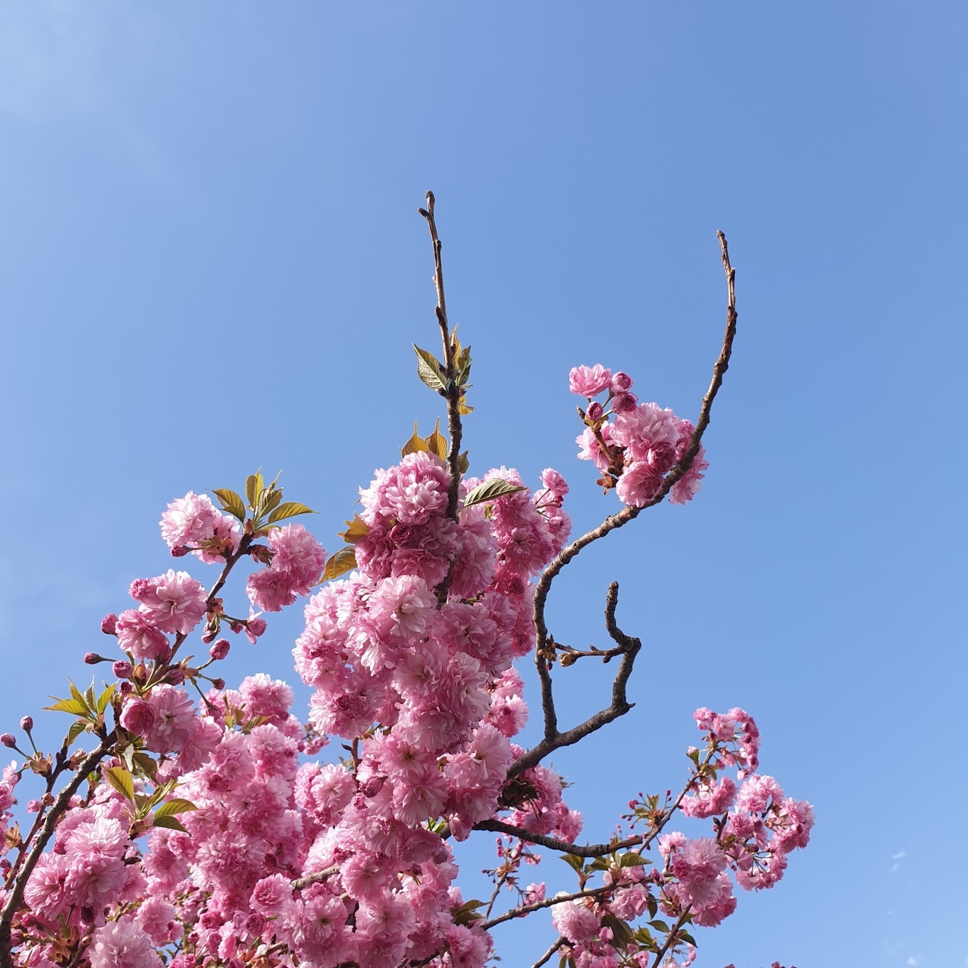 布宫和白塔路两旁的樱花开的朝气蓬勃,看到心花怒放,开心到了极致,加上湛蓝的天空,心情大好